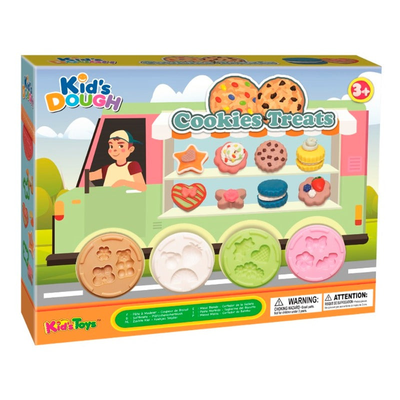 Comprend 4 sachets de pâte à modeler de couleurs différentes avec accessoires.